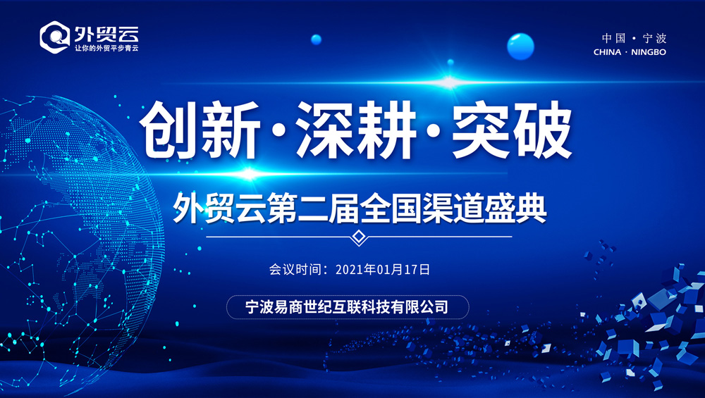 会议的开始,宁波易商世纪互联科技有限公司总经理叶建阳先生围绕“创新·深耕·突破”,从2020外贸大事记、外贸营销趋势、外贸云的2020、未来五年规划等多方面角度,对外贸云的过去和未来规划做了深度讲解。