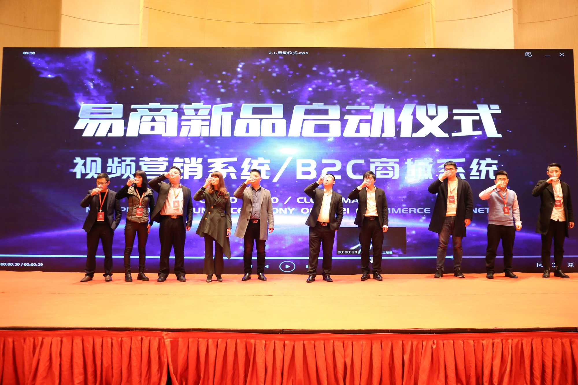 随后就到了外贸云新品发布启动仪式环节,易商互联总裁叶建阳先生、副总裁黄海华女士、技术总监杨星先生、全国渠道总监王超先生参加了启动仪式,另外我们还邀请了外贸云的优秀合作伙伴共同参与了启动仪式。